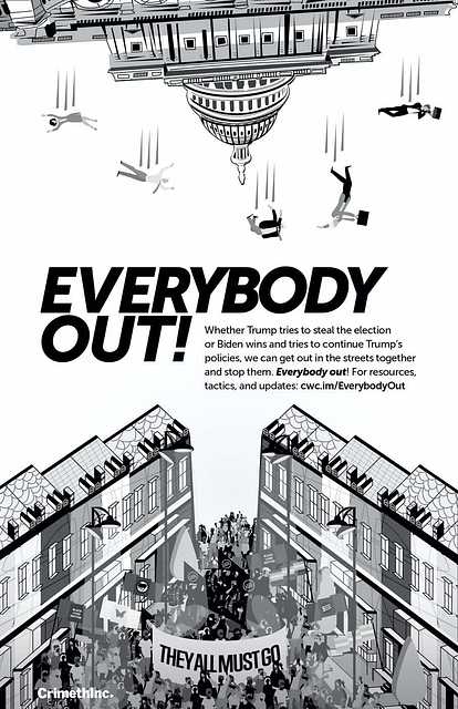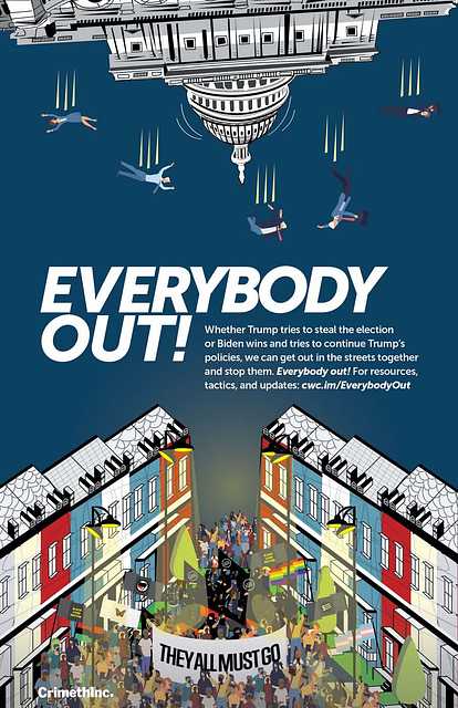 Whether Trump tries to steal the election or Biden wins and tries to continue the same policies, we can come together to stop them. Here, we offer a selection of resources to prepare for post-electoral unrest, including posters, primers on protest and security skills, and information about what different groups are organizing around the country. Everybody out!