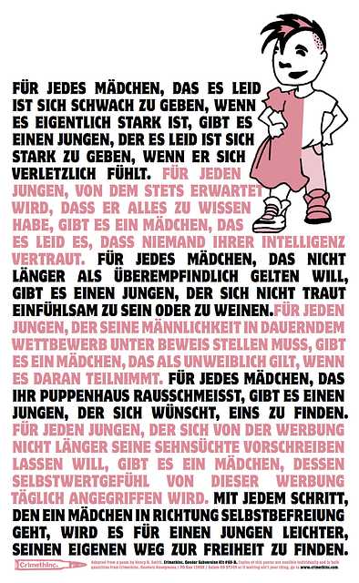 Für jedes Mädchen, das es Leid ist als übersensibel abgestempelt zu werden, gibt es einen Jungen, der Angst hat zärtlich zu sein, zu weinen.